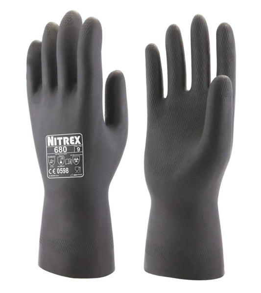 Hochleistungs-Chemikalienbeständige Handschuhe Nitrex 680 aus schwarzem Latex