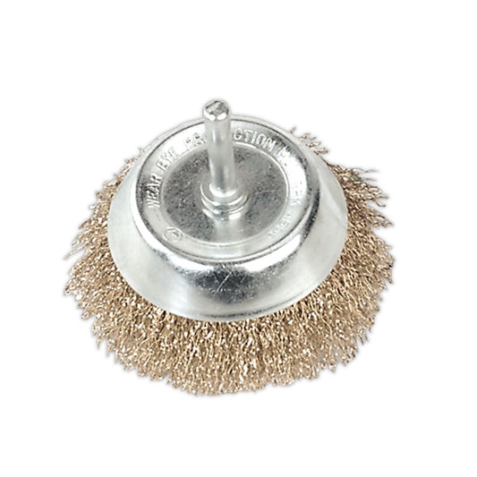Sealey CBC752 Topfbürste aus vermessingtem Stahl mit gewelltem Draht Ø75mm M14 x 2mm