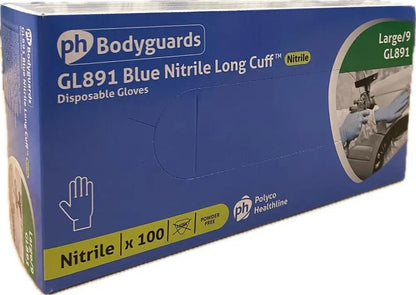 10 Boxes 1000 Bodyguards Long Cuff Blue Nitrile Disposable Gloves Large GL891