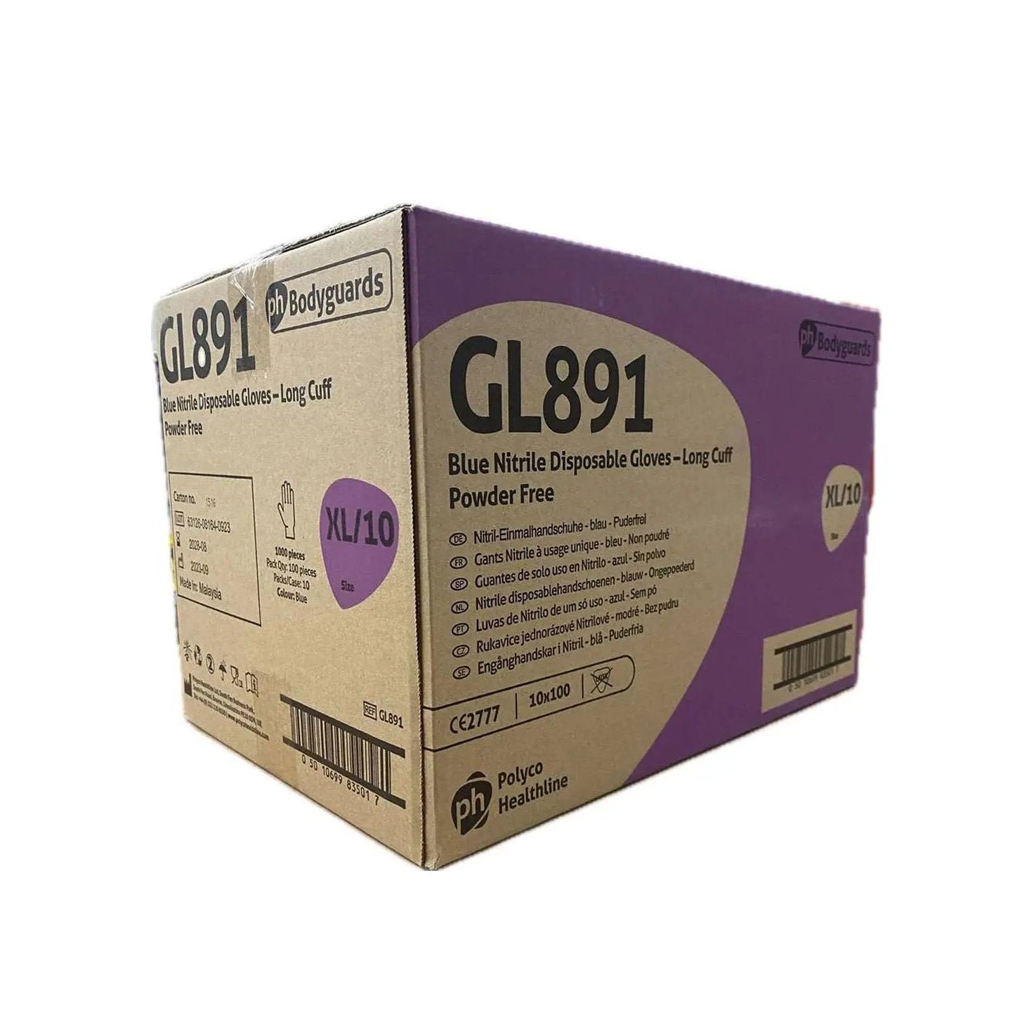 10 Boxes 1000 Bodyguards Long Cuff Blue Nitrile Disposable Gloves XL GL891