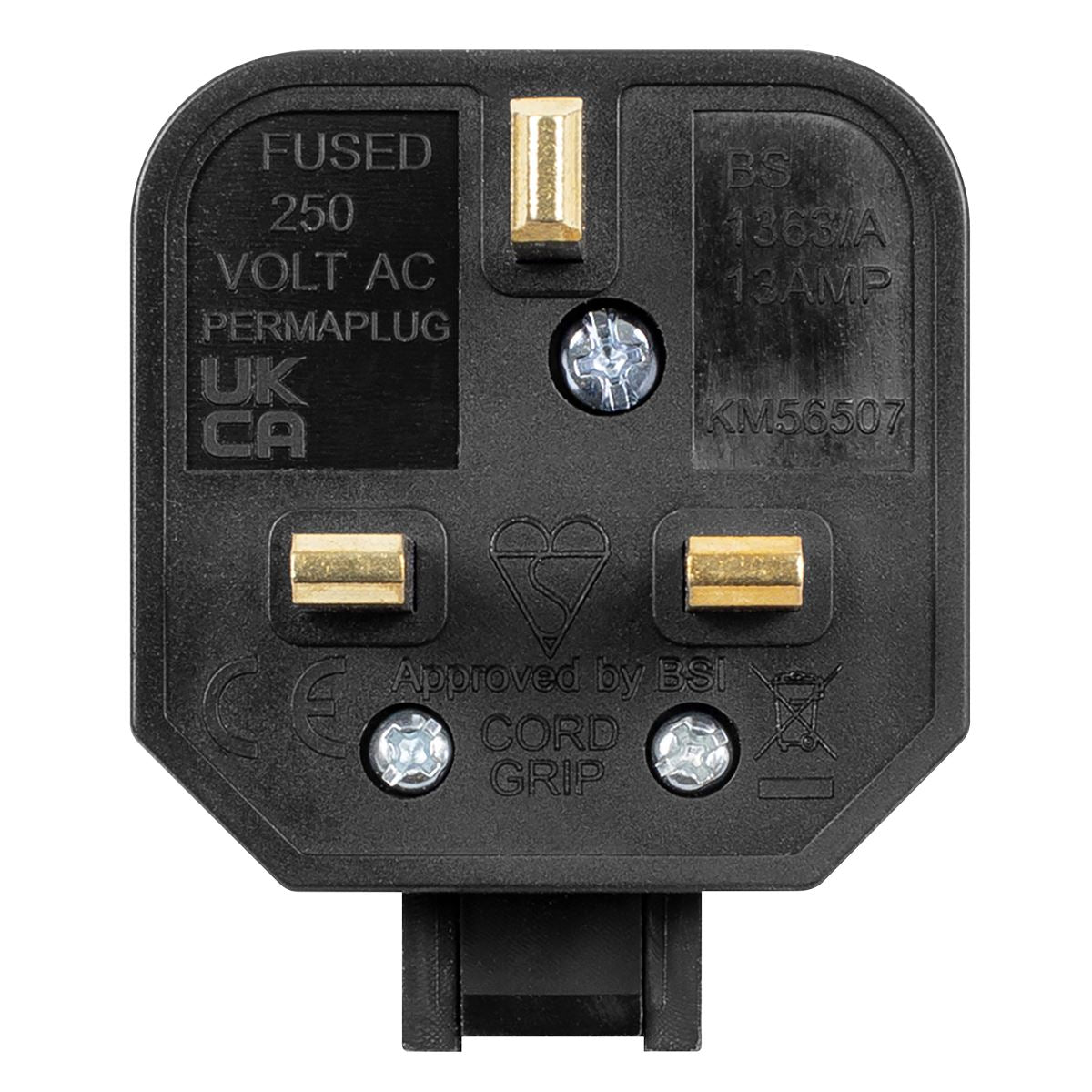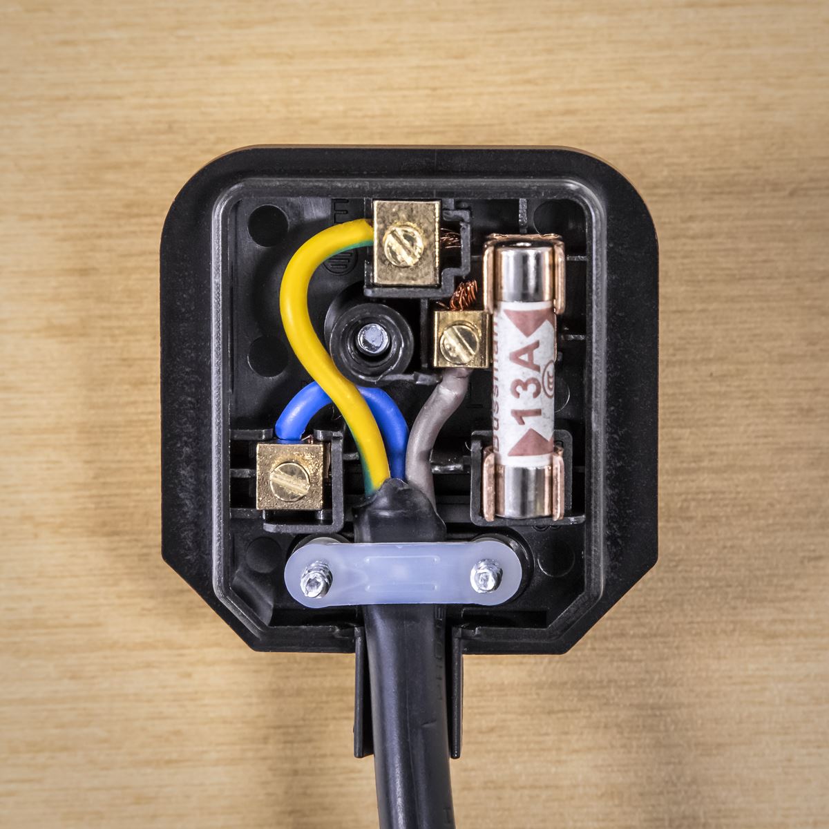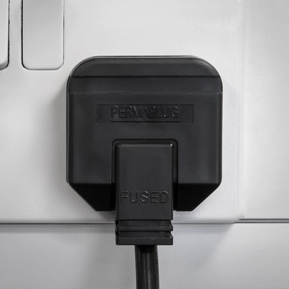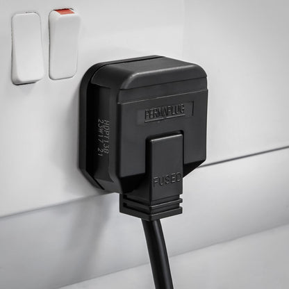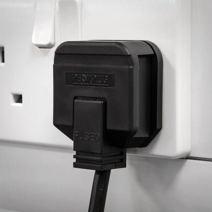Black 13A heavy-duty plug recommended for all garage and workshop use.